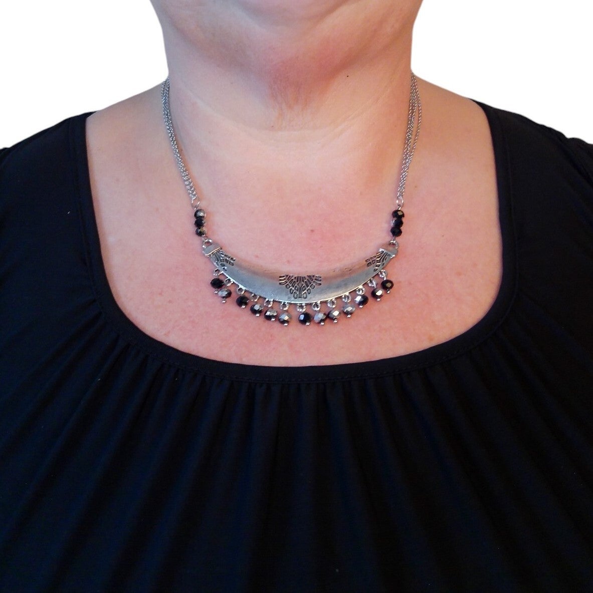 Stainless steel ketting mystiek - zwart/zilveren glaskralen - facet geslepen