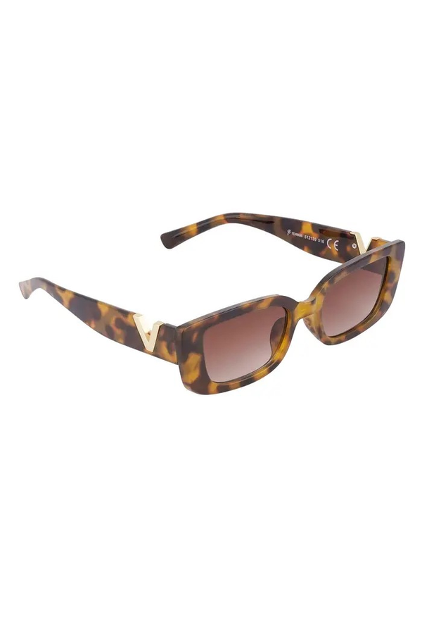 Klassieke dameszonnebril in drie stijlvolle montuurkleuren, met een opvallend V-teken op de pootjes. Gemaakt van lichtgewicht kunststof voor comfort en duurzaamheid. Tijdloos design dat elke look compleet maakt.