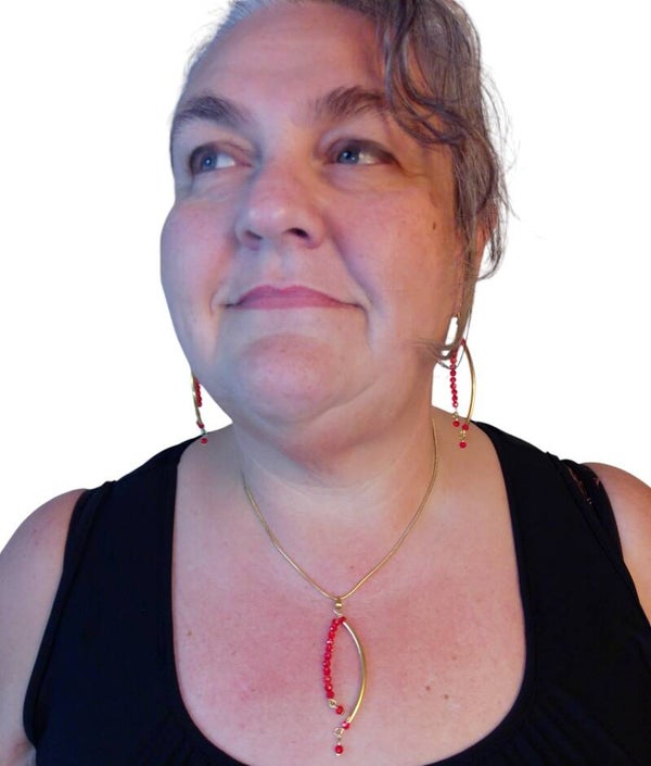 De sieraden set is volledig van stainless steel en is bewerkt met rode kralen.
