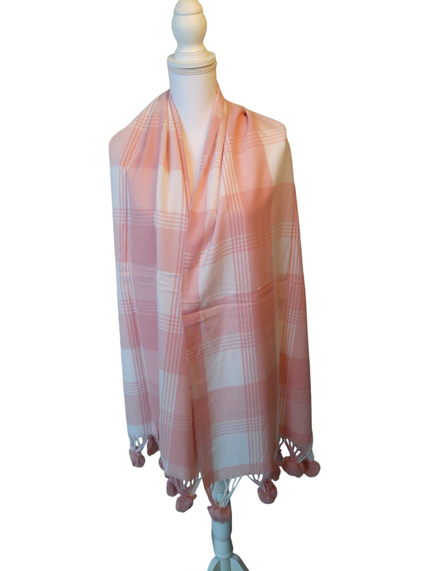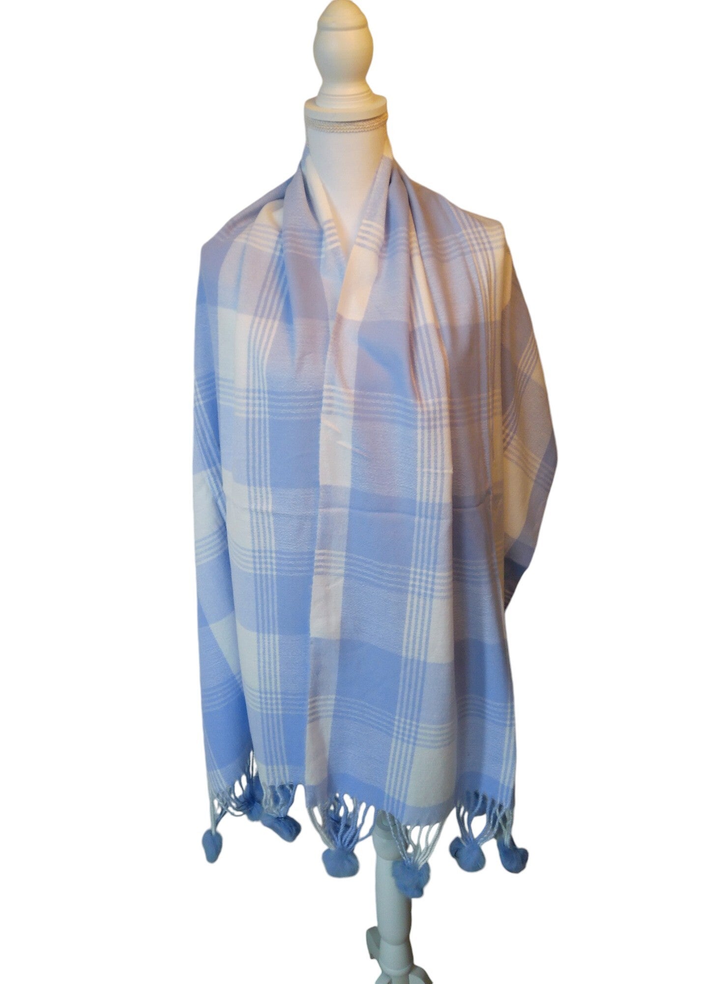 Deze stijlvolle sjaal is het perfecte accessoire voor de koudere dagen. Het geblokte patroon geeft een klassieke uitstraling en zorgt voor ultieme warmte en comfort. De sjaal is afgewerkt met speelse pompons, wat een trendy en speelse touch toevoegt aan je look.