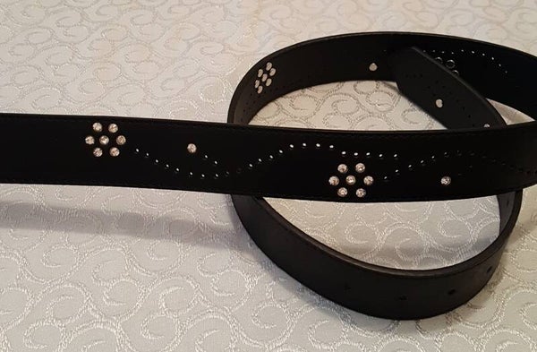Zwarte damesriem met gesp en strass steentjes